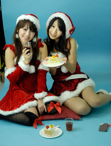 次はクリスマスパーティで仲良くケーキを食べるナナさんと美織さんです。このとき美雨さんはケーキを取りに行っています。